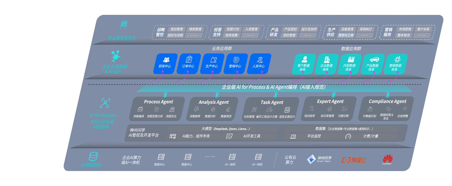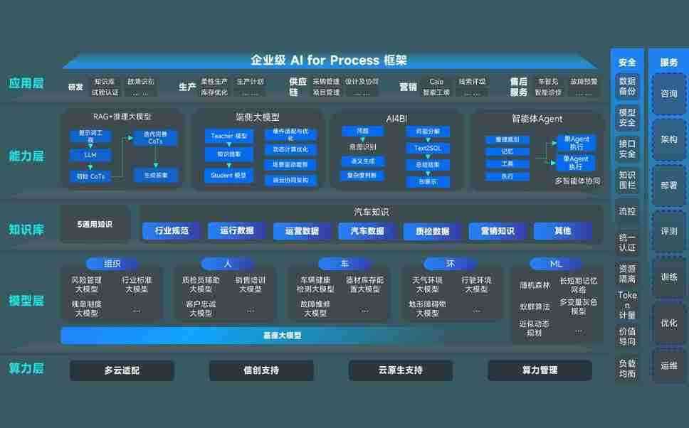 端到端的一站式AI工作空间深度融合了从企业战略规划到日常经营的全流程业务板块,,定向解决车企内部领域多、、、部门多、、链条长、、场景碎片化等难题,,支持车企快速构建以AI为核心的生产力写作体系,,实现任务执行与AI能力的无缝集成与交互